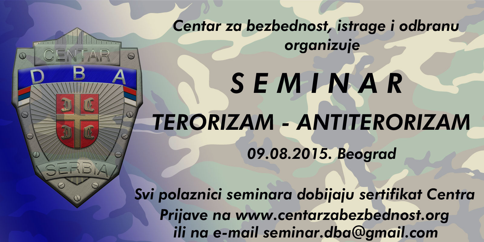 Centar za bezbednost, istrage i odbranu DBA organizuje kurs „Taktika tajnog praćenja“ koji će biti održan u prostorijama DBA, ulica Petra Lekovića broj 30, na Banovom Brdu, Beograd.